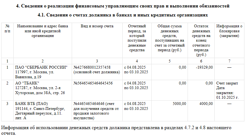 4.1. «Сведения о счетах должника в банках и иных кредитных организациях»